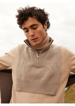 Découvrez Peter, notre col roulé plastron unisexe en 100% cachemire 4 fils. Tricoté en point jersey et doté d’une fermeture zippée, il apporte chaleur et style à vos tenues d’hiver.