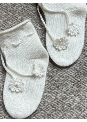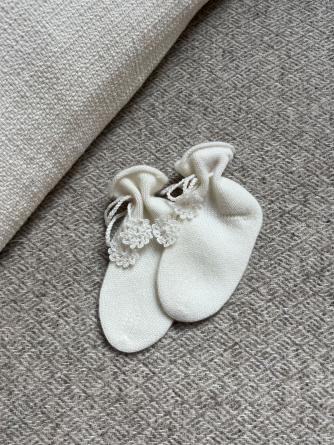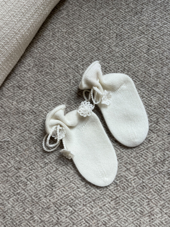 Tricotées en cachemire 4 fils, elles combinent chaleur, confort et légèreté, tout en apportant une touche d’élégance naturelle aux premières tenues de bébé.
