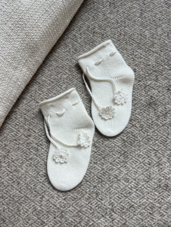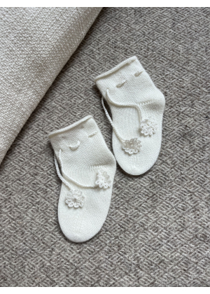 Nos chaussettes Fleur enveloppent les petits pieds de bébé d’une douceur infinie.