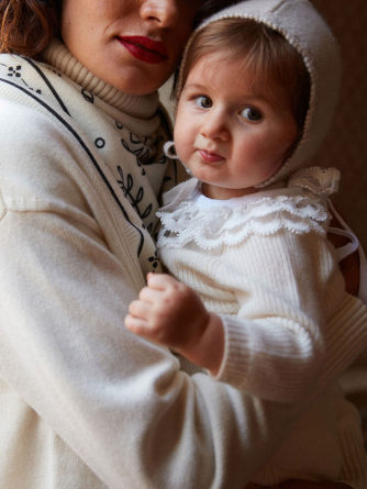 Découvrez notre col en dentelle de Calais Orso, délicatement brodé et imaginé pour sublimer les tenues de bébé avec raffinement.