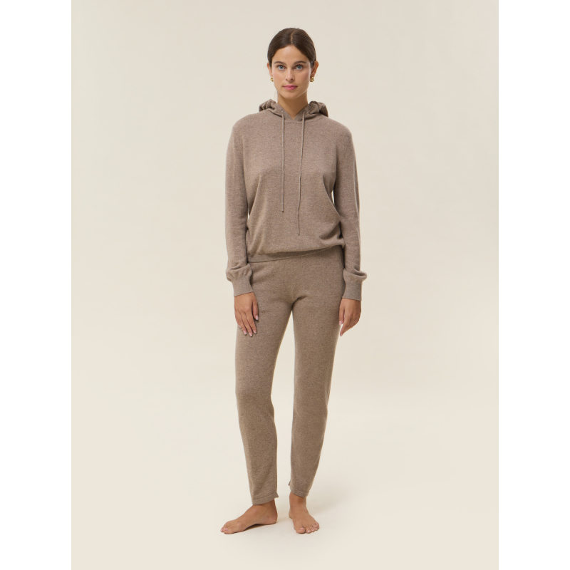 Confort et style : c’est la promesse de notre pantalon Lola en 100% cachemire. Doté d'une taille élastiquée, il est la pièce idéale pour un hiver au chaud et se porte avec notre hoodie Malka pour un total look doux et confortable.
