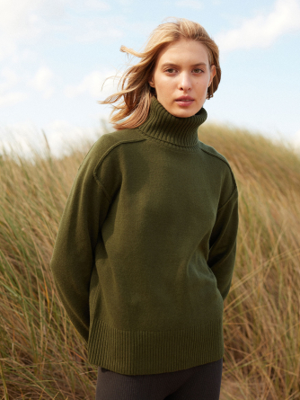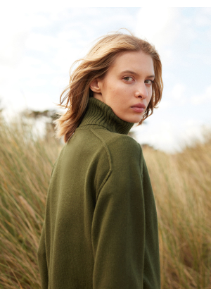Voici Dory, notre pull en cachemire tout en caractère. Tricoté dans une généreuse maille 4 fils, il se distingue par son col montant en 6 fils pour une allure structurée et encore plus de chaleur. Ce modèle présente des détails affirmés comme ses coutures apparentes à l’emmanchure et aux épaules qui lui apportent une touche moderne et décontractée.