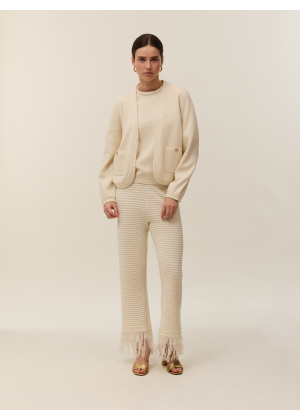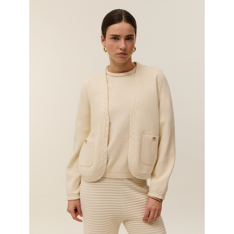 Voici Aimy, notre gilet tricoté en coton cachemire 2 fils.