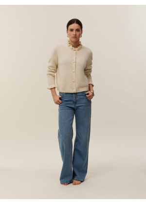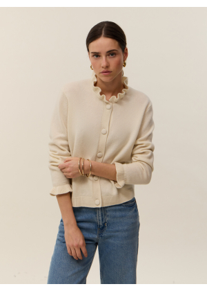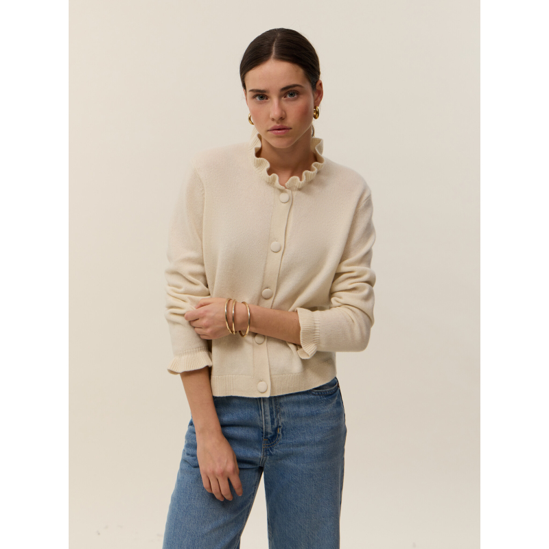 Découvrez Marguerite, notre cardigan tricoté en 100 % cachemire, dans une maille quatre fils à l’allure romantique.