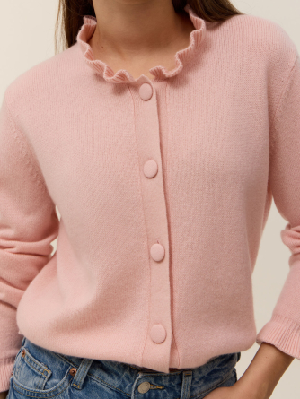 Découvrez Marguerite, notre cardigan tricoté en 100 % cachemire, dans une maille quatre fils à l’allure romantique.