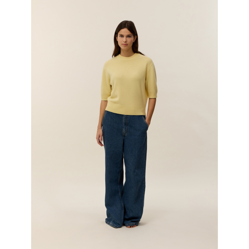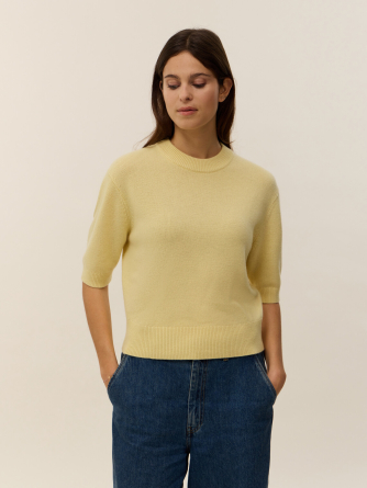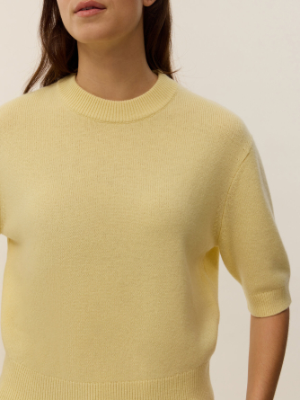Tricoté en 100% cachemire 4 fils, notre pull manches courtes Jeanne est une pièce clé, alliant modernité et élégance dans le vestiaire féminin. Sa coupe droite et sa maille douce côtelée au niveau du col, des manches et du bas de corps lui confèrent une allure soignée et confortable, idéale pour les saisons intermédiaires.
