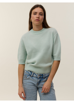 Tricoté en 100% cachemire 4 fils, notre pull manches courtes Jeanne est une pièce clé, alliant modernité et élégance dans le vestiaire féminin. Sa coupe droite et sa maille douce côtelée au niveau du col, des manches et du bas de corps lui confèrent une allure soignée et confortable, idéale pour les saisons intermédiaires.