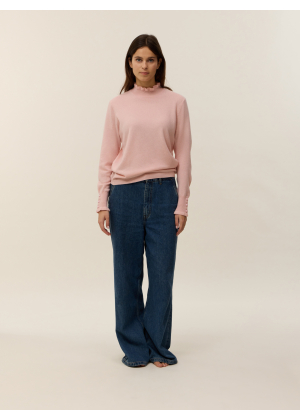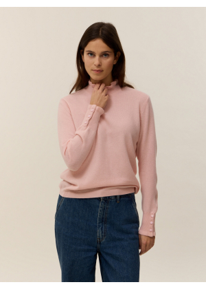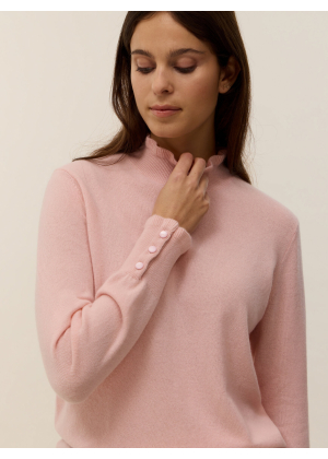 Découvrez Laya, notre pull en 100% cachemire à l'allure romantique, tricoté dans une maille 2 fils. Son col montant et ses poignets à volants lui apportent une délicate touche de fantaisie.