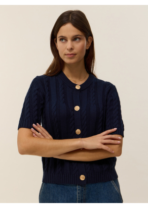 Voici Zoé, notre cardigan tricoté en coton et cachemire en maille 4 fils, idéal pour conserver une légère chaleur tout en restant chic lors des premiers beaux jours.