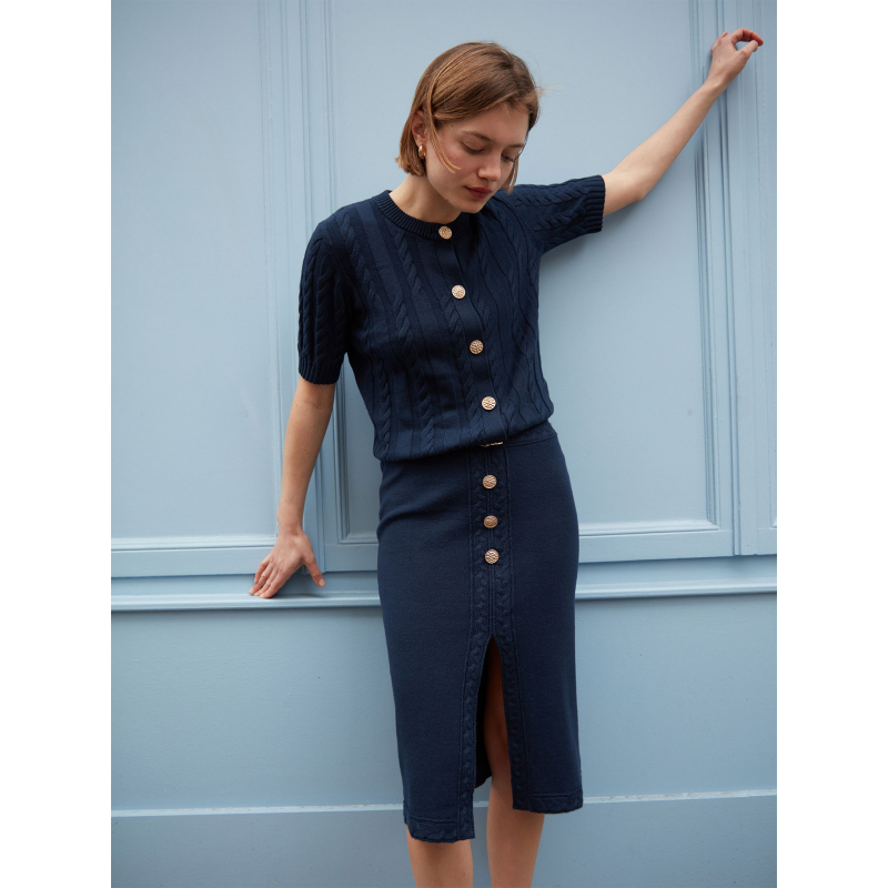 - Détail tresse en maille plaquée sur le long du vêtement