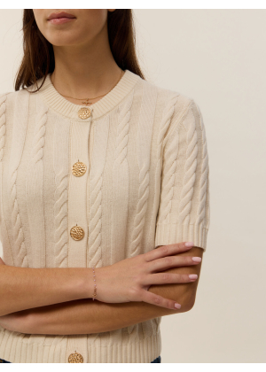 Voici Zoé, notre cardigan tricoté en coton et cachemire en maille 4 fils, idéal pour conserver une légère chaleur tout en restant chic lors des premiers beaux jours.