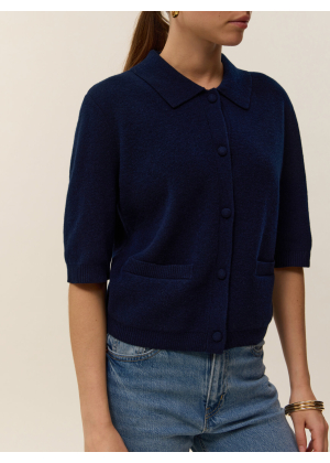 Découvrez Rachel, notre polo tricoté en 100% cachemire, dans une maille 2 fils à l’allure chic.