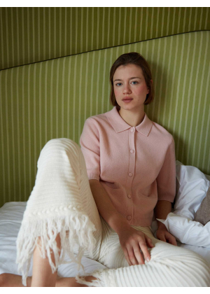 Découvrez Rachel, notre polo tricoté en 100% cachemire, dans une maille 2 fils à l’allure chic.
