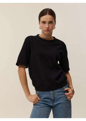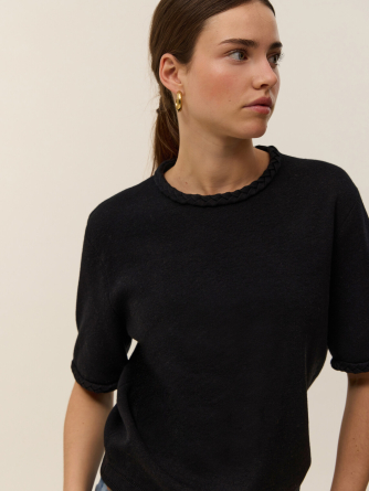 Voici Ysé, notre top manches courtes en maille coton cachemire 2 fils, pensé pour allier élégance et style. Sa coupe oversize et sa maille Milano offrent une silhouette structurée et raffinée, parfaite au quotidien. Les détails en tresse au col et aux manches apportent une texture subtile à son design minimaliste et moderne.