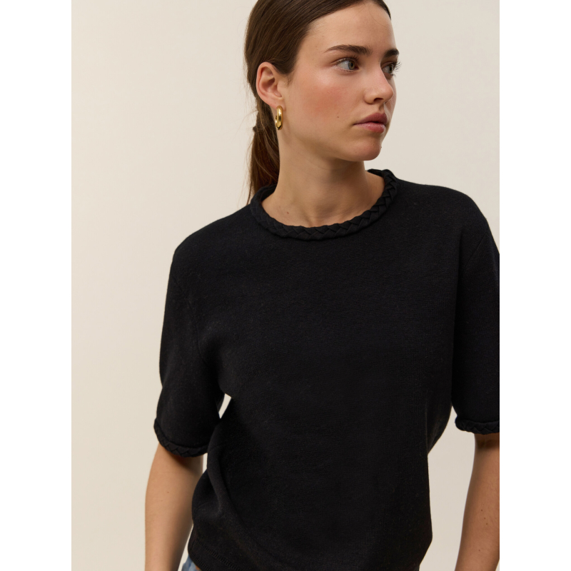 - Détail tresse en maille plaquée sur le col