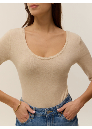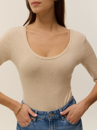 Voici Alexandra, notre tout premier body tricoté en maille coton cachemire 2 fils, parfait pour les beaux jours.