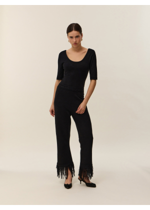 - Détail tresse en maille plaquée sur le col