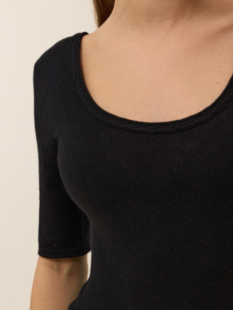 Voici Alexandra, notre tout premier body tricoté en maille coton cachemire 2 fils, parfait pour les beaux jours.