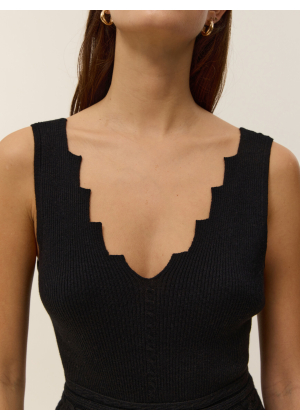 Son col géométrique apporte une touche originale et moderne, pour un look qui ne passe pas inaperçu aux beaux jours.