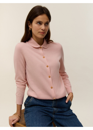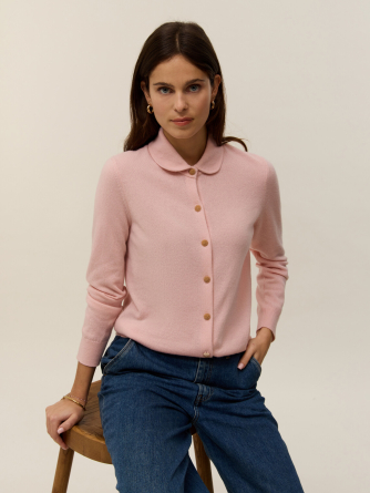 Voici Rose, notre cardigan-chemisier en maille 2 fils 100% cachemire, pensé pour allier raffinement et confort. Son col Claudine en point Milano lui apporte une touche rétro et féminine, tandis que sa maille jersey assure un tombé souple et élégant. Sa coupe droite s’adapte à toutes les silhouettes, sublimée par de délicats boutons dorés en guise de fermeture.