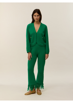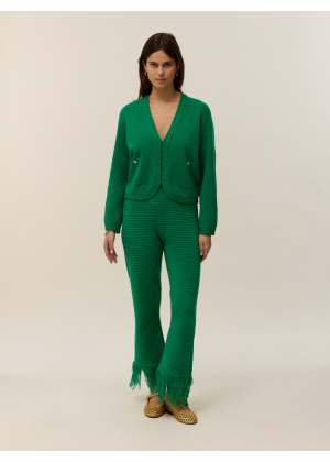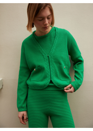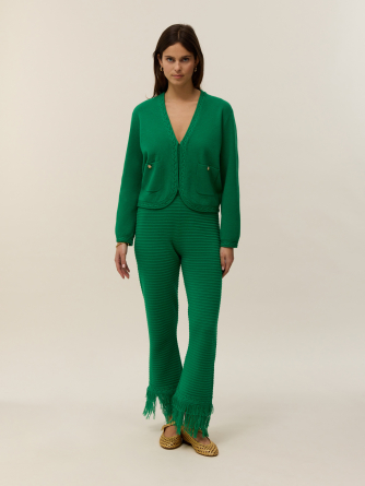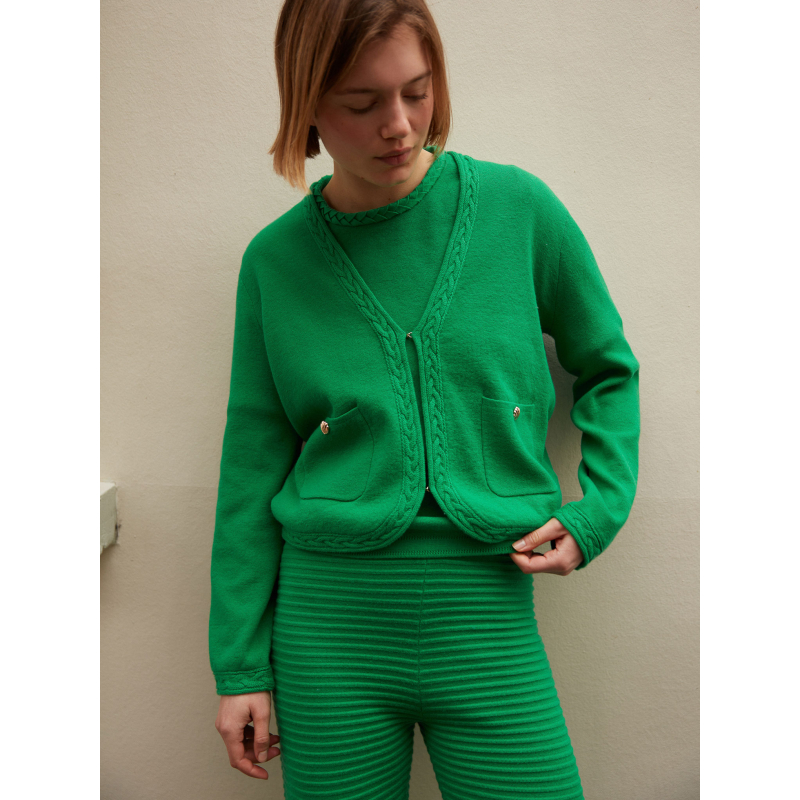 Voici Aimy, notre gilet tricoté en coton cachemire 2 fils.
