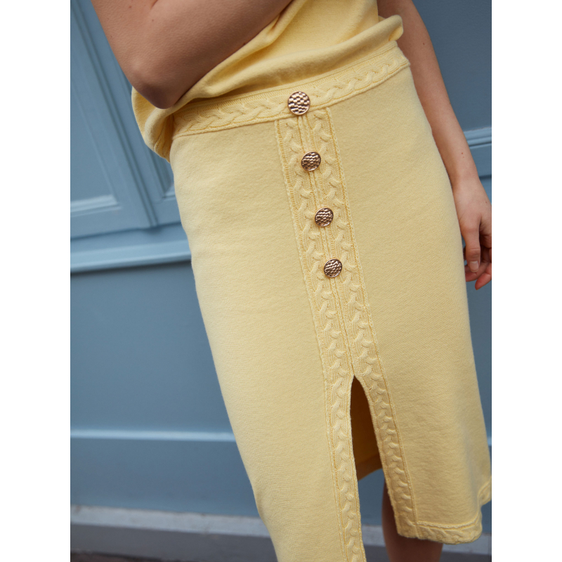 Voici Aimy, notre jupe tricotée en coton cachemire 2 fils.