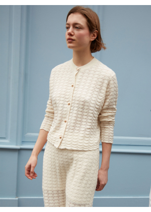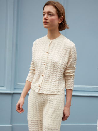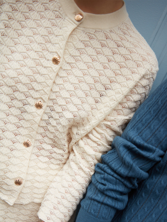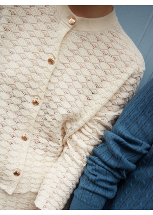 Voici Stella, notre cardigan col rond en tricot coton cachemire 2 fils, pensé pour apporter fraîcheur et féminité à votre garde-robe. Sa coupe droite, facile à porter, s'adapte à toutes les silhouettes et se glisse aussi bien sur un top léger qu'une robe pour les journées printanières.