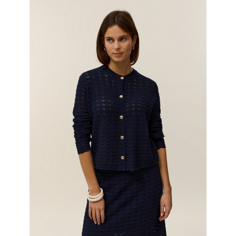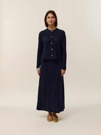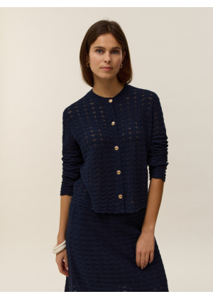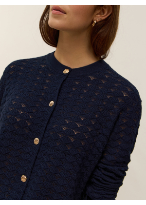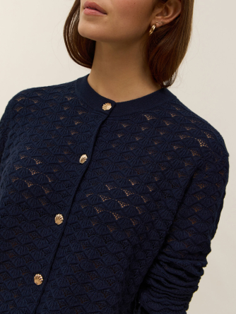 Voici Stella, notre cardigan col rond en tricot coton cachemire 2 fils, pensé pour apporter fraîcheur et féminité à votre garde-robe. Sa coupe droite, facile à porter, s'adapte à toutes les silhouettes et se glisse aussi bien sur un top léger qu'une robe pour les journées printanières.