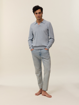 Découvrez Milo, non pull en coton et cachemire 2 fils idéal pour commencer la mi-saison. Son col polo le rends polyvalent, tandis que sa coupe droite lui confère une allure classique et intemporelle.