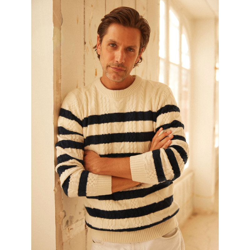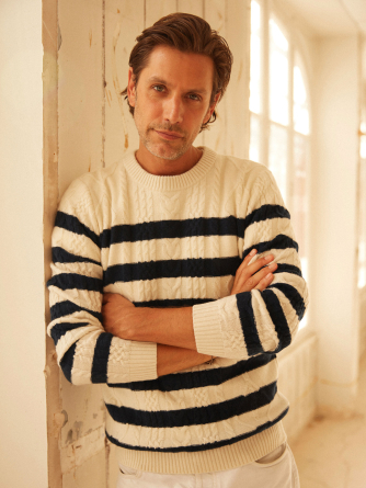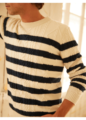 Voici Kovol, notre pull irlandais tricoté dans une maille 4 fils 100% cachemire.