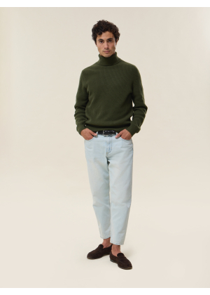 Tricoté dans une maille épaisse 4 fils en 100% cachemire, notre pull Oscar réinvente le col roulé masculin avec allure et caractère. Sa maille en côtes anglaises lui confère une texture généreuse et un tombé structuré, parfait pour affronter l’hiver avec style.