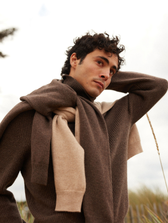 Tricoté dans une maille épaisse 4 fils en 100% cachemire, notre pull Oscar réinvente le col roulé masculin avec allure et caractère. Sa maille en côtes anglaises lui confère une texture généreuse et un tombé structuré, parfait pour affronter l’hiver avec style.