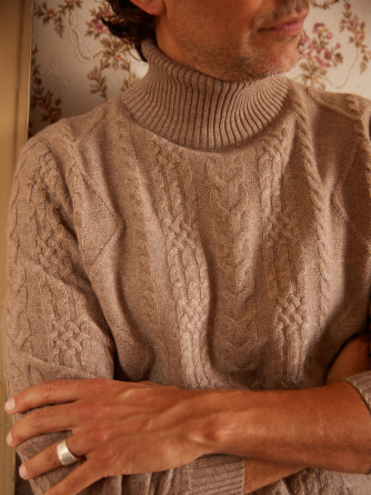 Tricoté dans une maille dense et épaisse 4 fils, notre col roulé Ovol n'est autre que l'iconique pull irlandais revisité dans une version en 100% cachemire. La pièce idéale pour passer l’hiver au chaud !