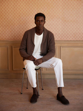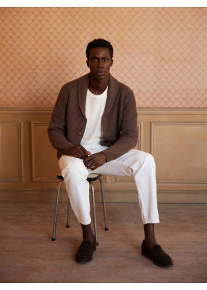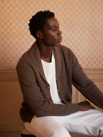Tricoté en 100% cachemire 4 fils, notre cardigan Yeleg est un iconique du vestiaire masculin. Son col châle et sa maille épaisse à côte anglaise apporteront du caractère à vos tenues. Il se porte sur un t-shirt pour un look casual ou par-dessus une chemise pour un look plus formel.