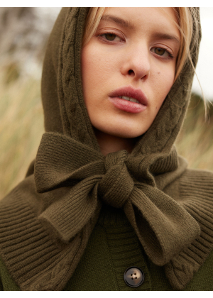 Découvrez une nouveauté chez Hircus : la cagoule Josepha, tricotée en 100 % cachemire 2 fils, en point jersey.
