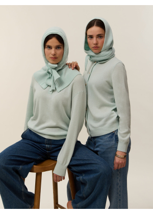 Voici la cagoule Petra, tricotée en maille 6 fils, 100 % cachemire.