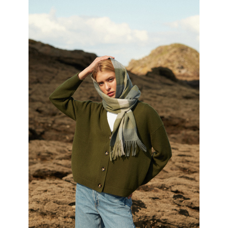 Tissée en 100% cachemire, voici l'écharpe Pio, promesse de douceur et de chaleur. Doté d'un motif tartan, synonyme d'élégance, Pio apportera une touche de raffinement à votre garde-robe.