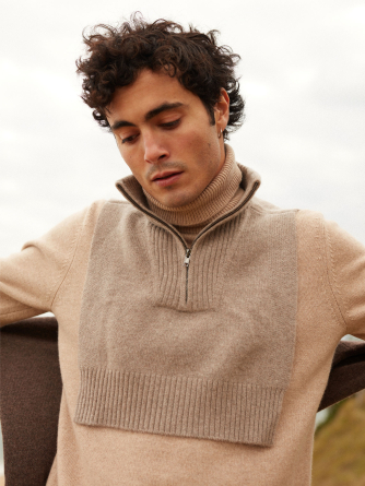 Discover Peter, our unisex zip-front turtleneck in 100% four-ply cashmere. Knitted in jersey stitch and equipped with a zipper, it brings warmth and style to your winter outfits.