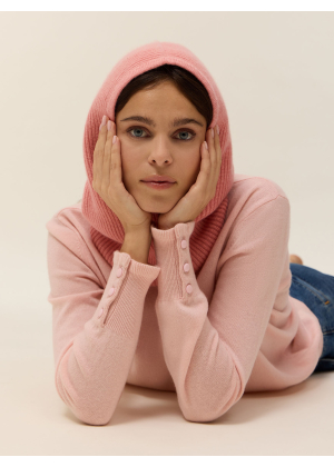 Discover the Valya balaclava knitted in a 4-ply 100% cashmere stitch. Both practical and trendy, it offers optimal protection against the cold and also adds a stylish touch to your outfit.