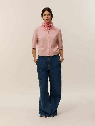 Discover Jo, our triangle scarf knitted in 100% four-ply cashmere.
