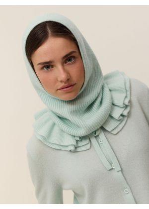 Discover the Valya balaclava knitted in a 4-ply 100% cashmere stitch. Both practical and trendy, it offers optimal protection against the cold and also adds a stylish touch to your outfit.