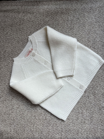 Meet Val, our baby cashmere cardigan knitted in garter stitch.
