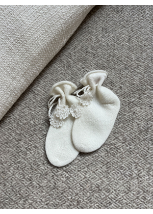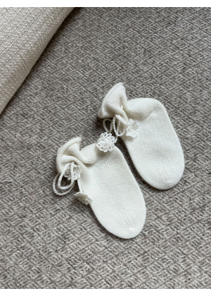 Knitted in 4-ply cashmere, they combine warmth, comfort, and lightness, while adding a naturally elegant touch to baby’s first outfits.