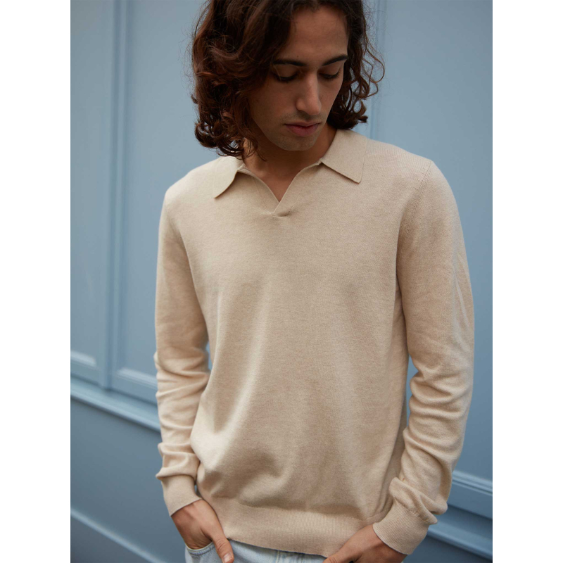 Discover Milo, a 2-ply cotton and cashmere Sweater ideal for the beginning of the mid-season. Its polo collar makes it versatile, while its straight cut gives it a classic and Horaless look.