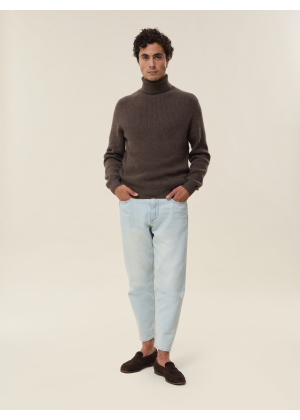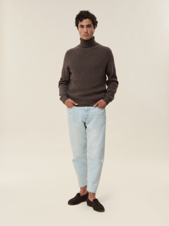 Knitted in a thick 4-ply 100% cashmere yarn, our Oscar sweater reinvents the classic men’s turtleneck with style and character. Its English rib stitch creates a rich texture and a structured drape, perfect for facing winter in elegance.