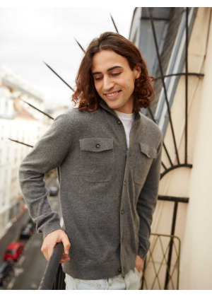 Knitted in jersey stitch, discover Rome, our 100% cashmere cardigan-jacket.