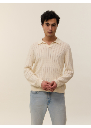 Knitted in a two-ply fantasy stitch, our Tim cotton-cashmere polo-collar sweater brings elegance and originality to your wardrobe.