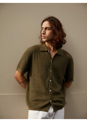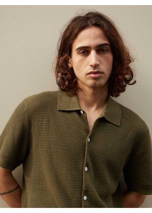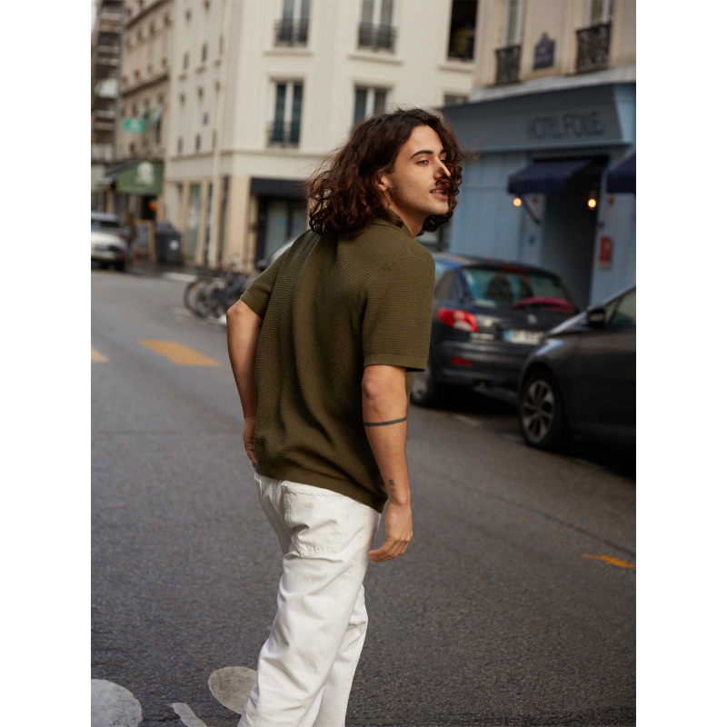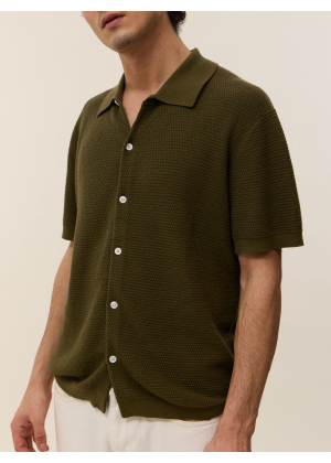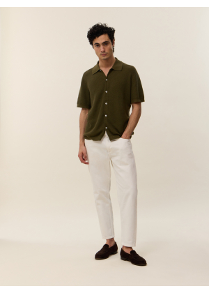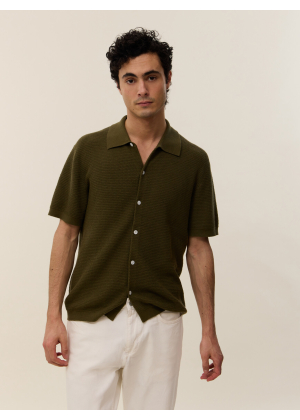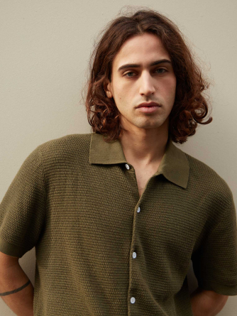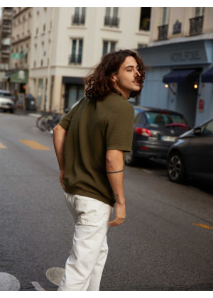 Halfway between the shirt and the polo shirt, here is Zev, our essential for the summer season. This model in 2-ply cotton cashmere knit features a button placket for a subtle nod to the 70's.