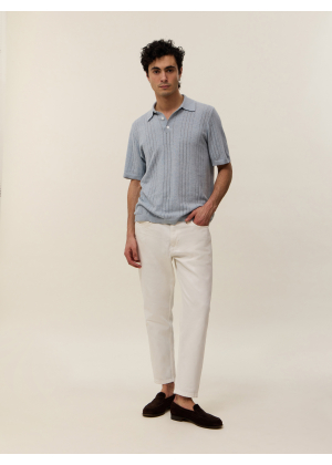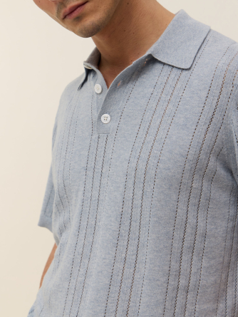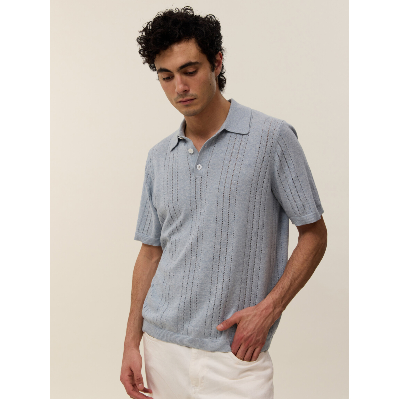 Choose Andrew, a polo with a clean and contemporary style. Featuring short sleeves and three buttons placed at the base of its V-neck collar, it reinterprets the classic polo with a touch of modernity and freshness. Its textured knit adds a delicate dimension that enriches the minimalist design without compromising its understated elegance.