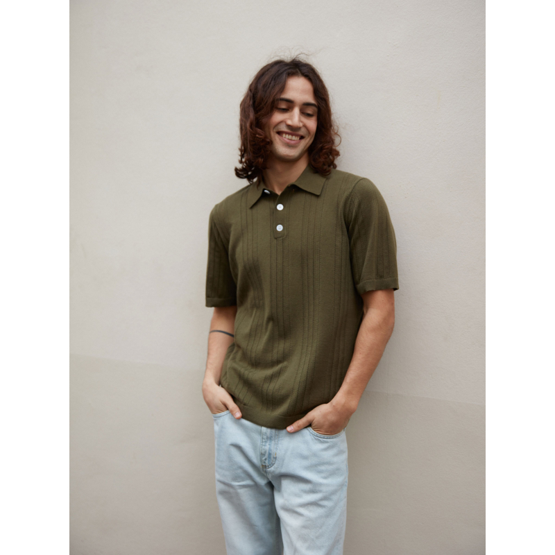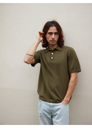 Choose Andrew, a polo with a clean and contemporary style. Featuring short sleeves and three buttons placed at the base of its V-neck collar, it reinterprets the classic polo with a touch of modernity and freshness. Its textured knit adds a delicate dimension that enriches the minimalist design without compromising its understated elegance.